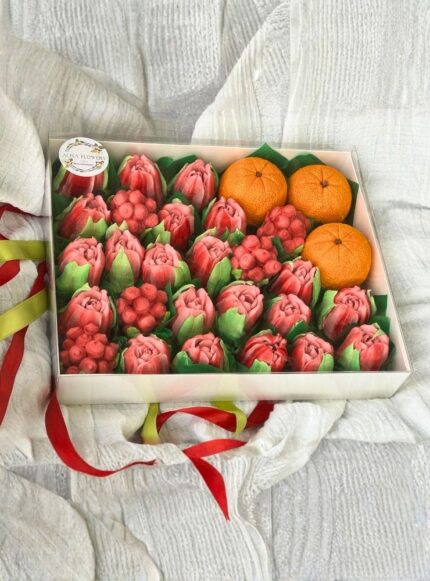 Kutudaki tüm laleler tamamen yenilebilir marshmallow malzemesinden üretilmiştir.