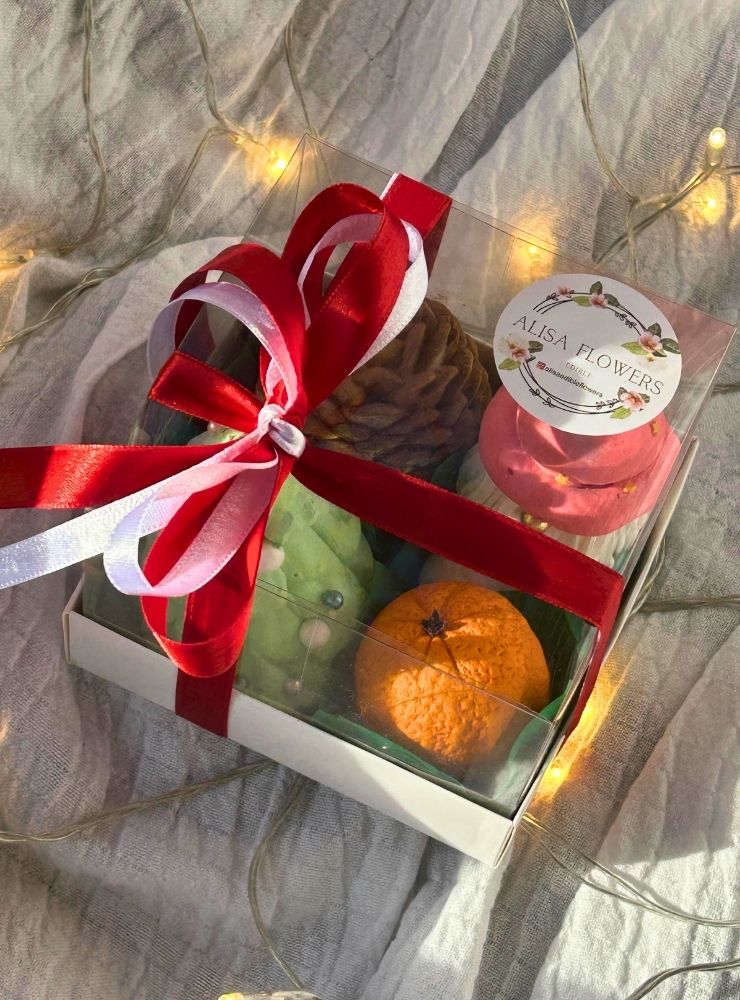Fantezi Yılbaşı Box No.03 – 12×12 cm, 4 adet yenilebilir marshmallowdan oluşan zarif bir mini hediye kutusudur.