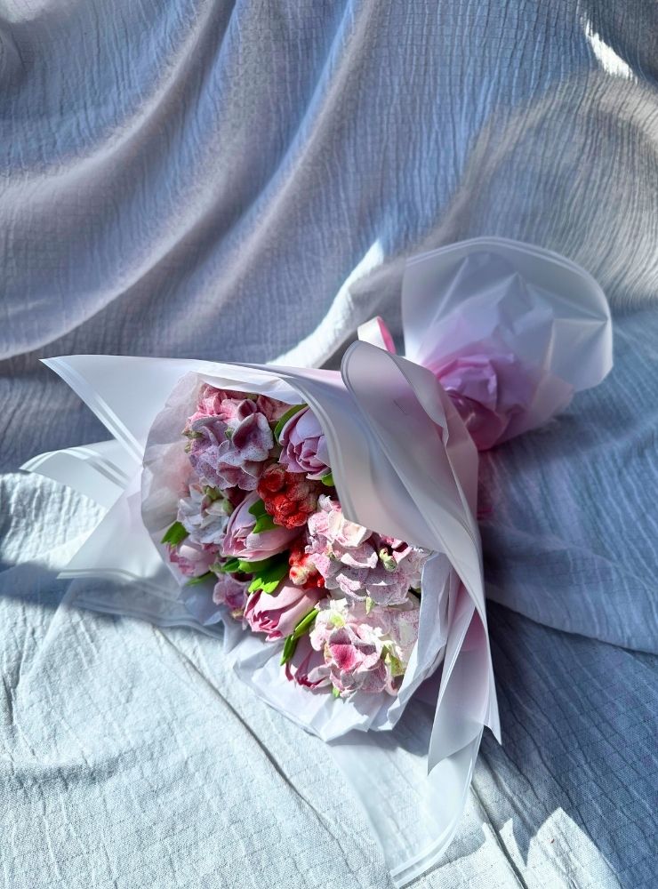 45 cm boyutunda, el yapımı yenilebilir lalelerden oluşan özel bir bukettir.