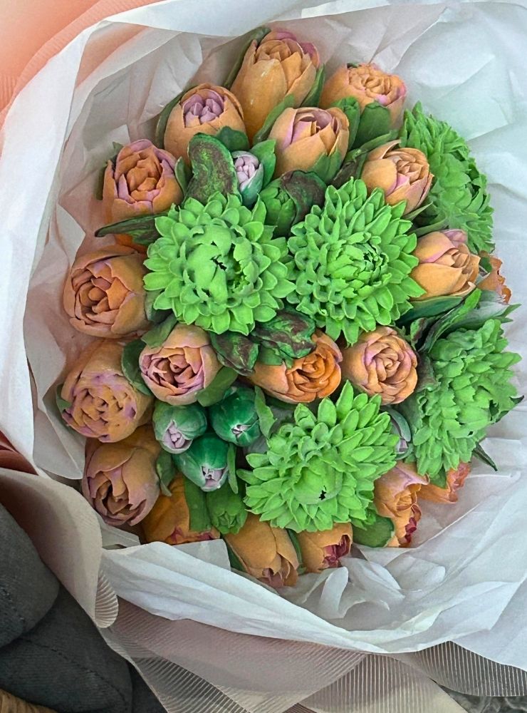 35 cm boyutunda, el yapımı yenilebilir lalelerden oluşan özel bir bukettir.