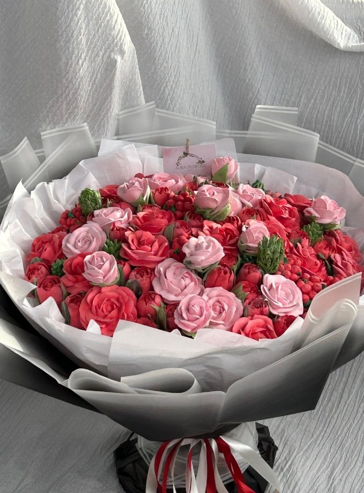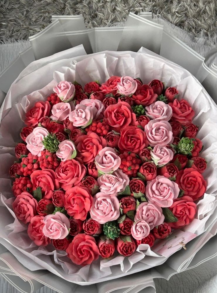 • 40 cm boyutunda el yapımı yenilebilir fantezi buket
