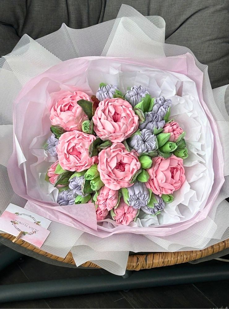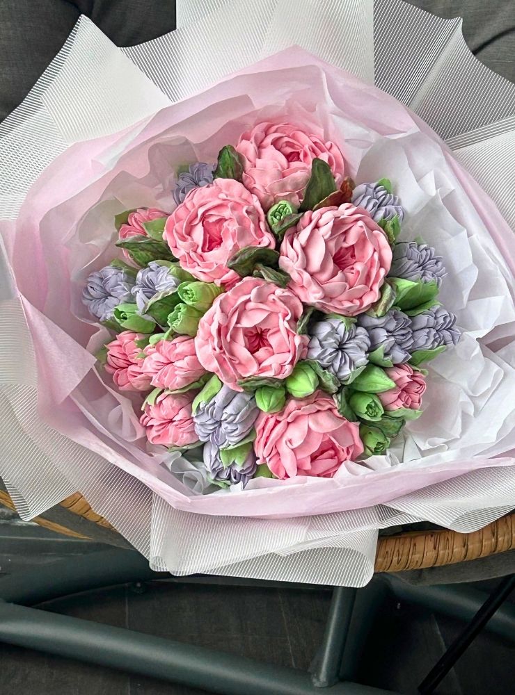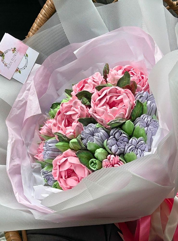 • 25 cm boyutunda el yapımı yenilebilir fantezi buket