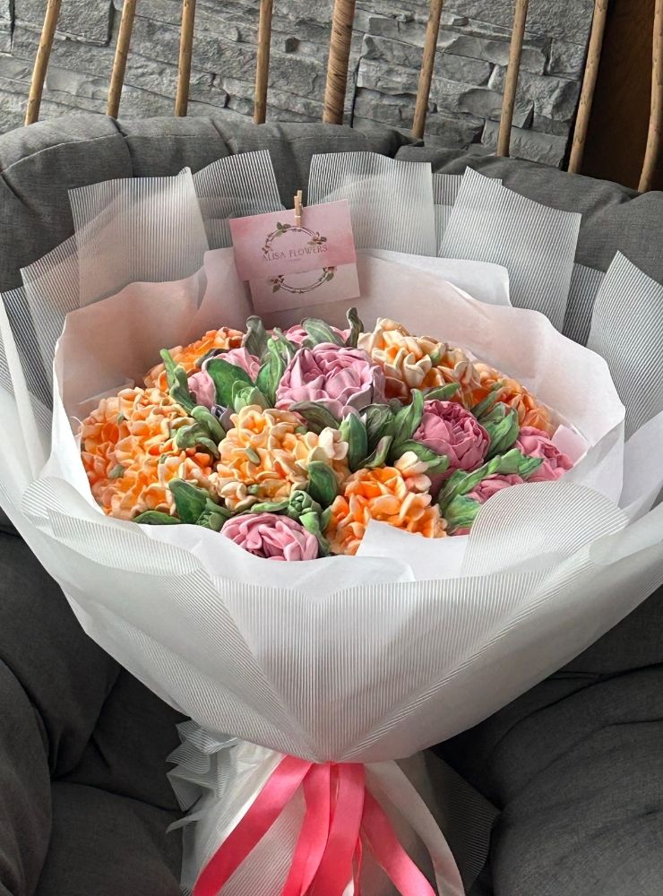 Fantezi Buket No.29 – 30 cm, tamamen el işçiliğiyle hazırlanmış, yenilebilir marshmallow çiçeklerden oluşan özel bir tasarımdır.