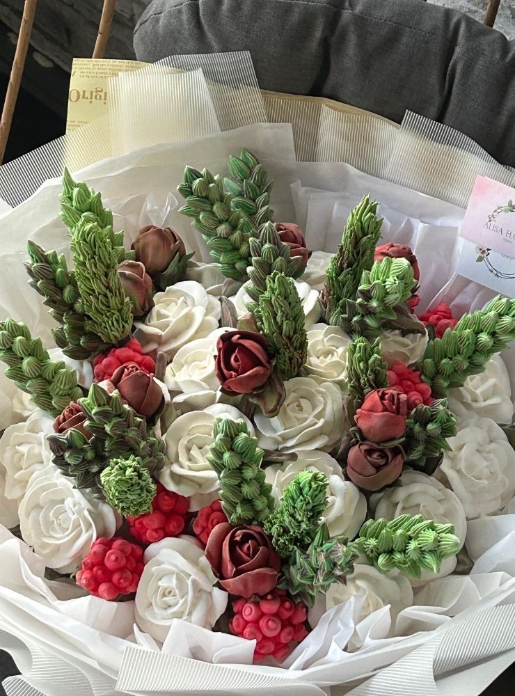 35 cm boyutunda el yapımı yenilebilir fantezi buket