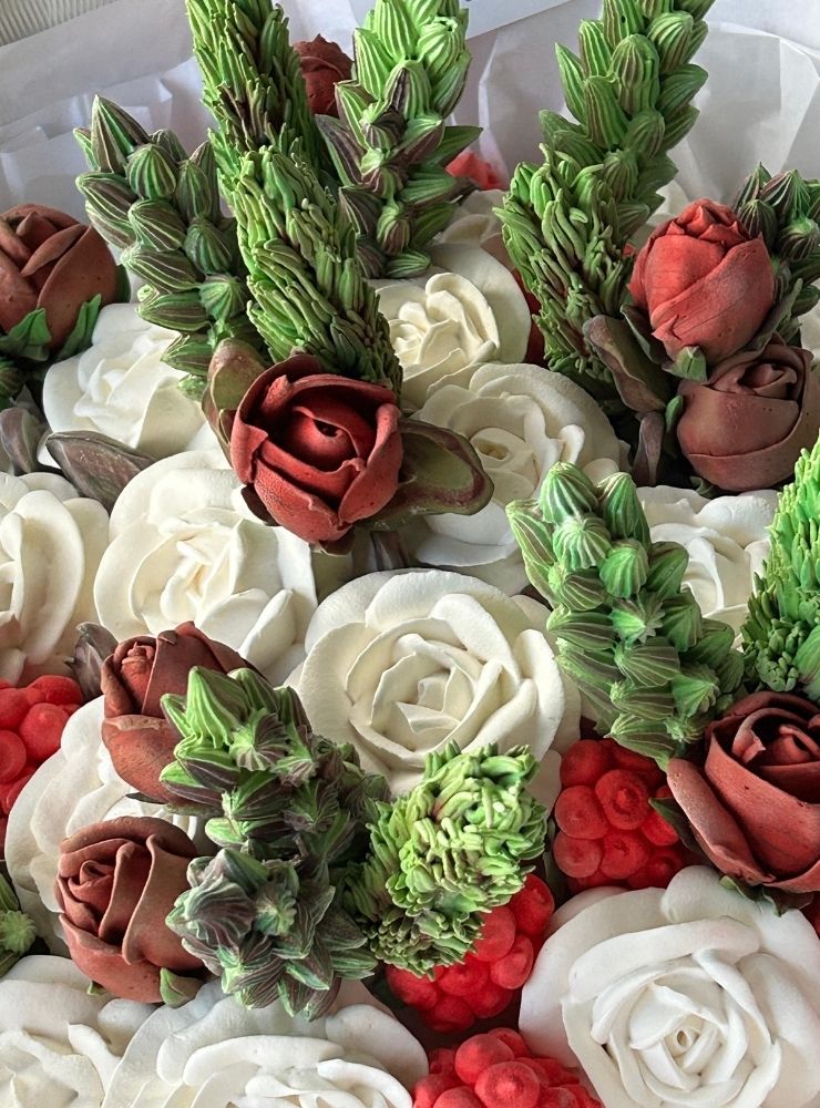 Kutudaki tüm laleler tamamen yenilebilir marshmallow malzemesinden üretilmiştir.