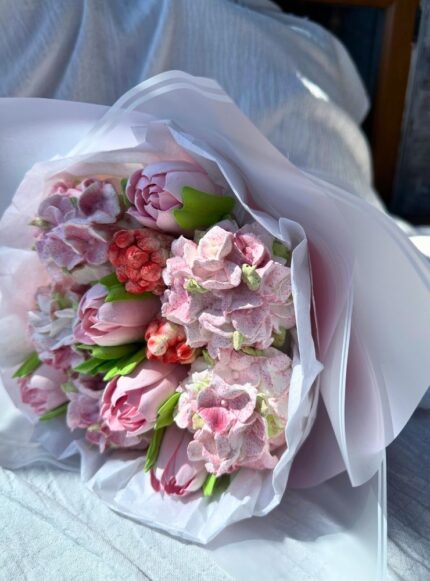 20 cm boyutunda, el yapımı yenilebilir lalelerden oluşan özel bir bukettir.