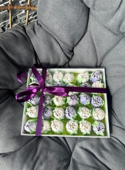 Kutudaki tüm laleler tamamen yenilebilir marshmallow malzemesinden üretilmiştir.