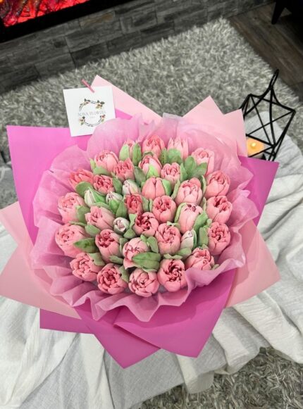 20 cm boyutunda, el yapımı yenilebilir lalelerden oluşan özel bir bukettir.