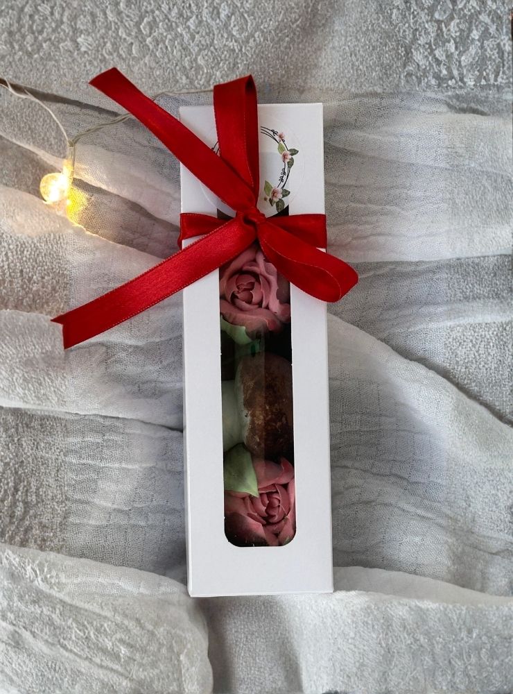 20×5 cm ölçülerinde, 4 adet yenilebilir marshmallow laleden oluşan mini hediye kutusudur.