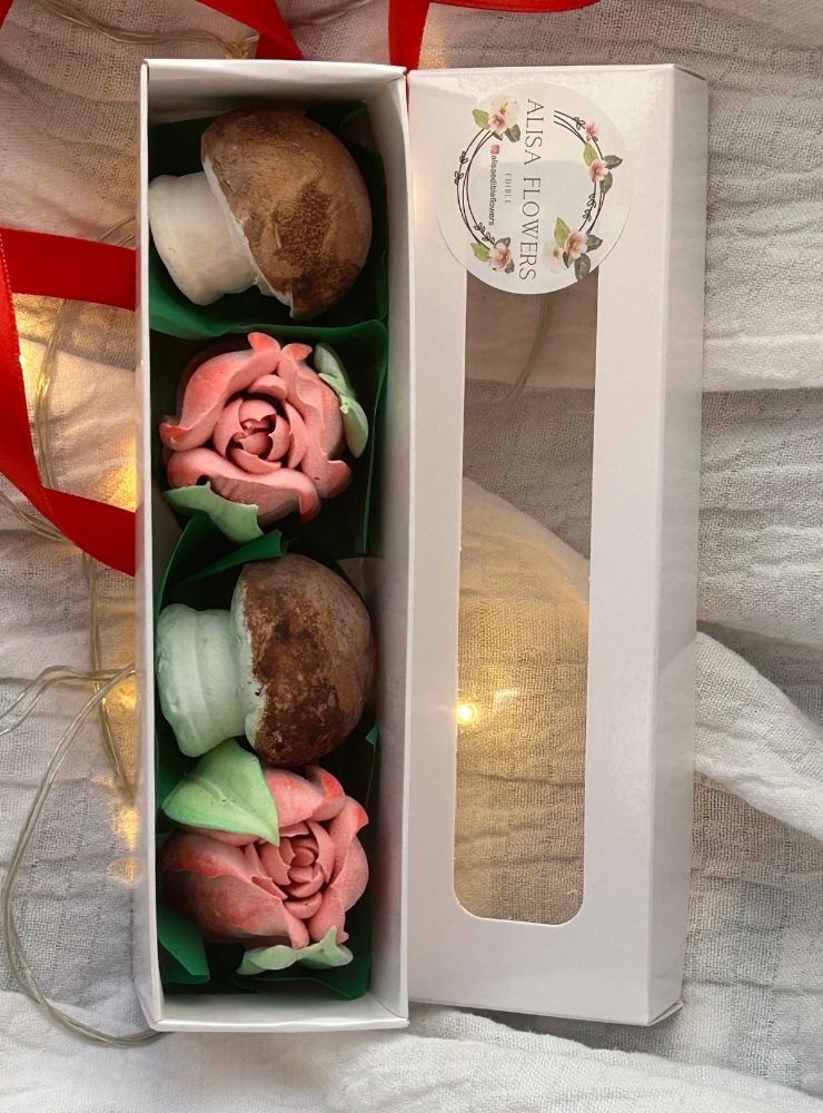 Kutudaki tüm laleler tamamen yenilebilir marshmallow malzemesinden üretilmiştir.