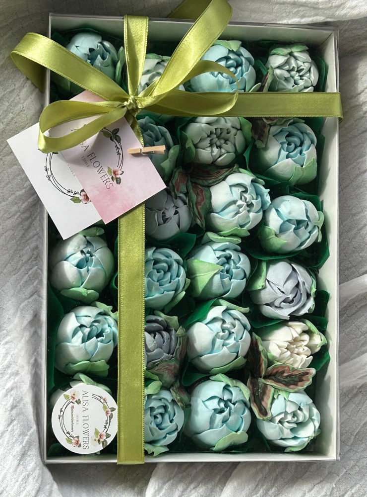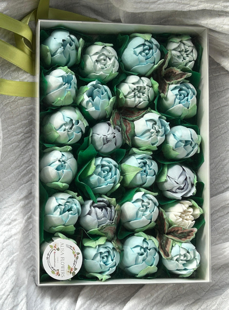 Kutudaki tüm laleler tamamen yenilebilir marshmallow malzemesinden üretilmiştir.