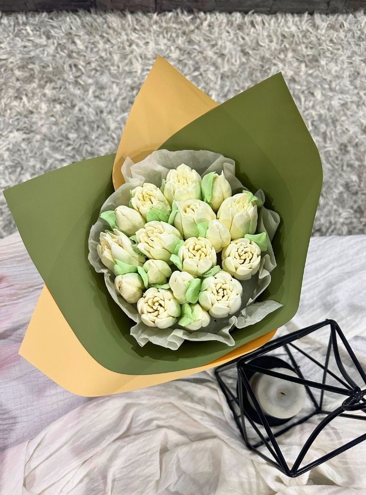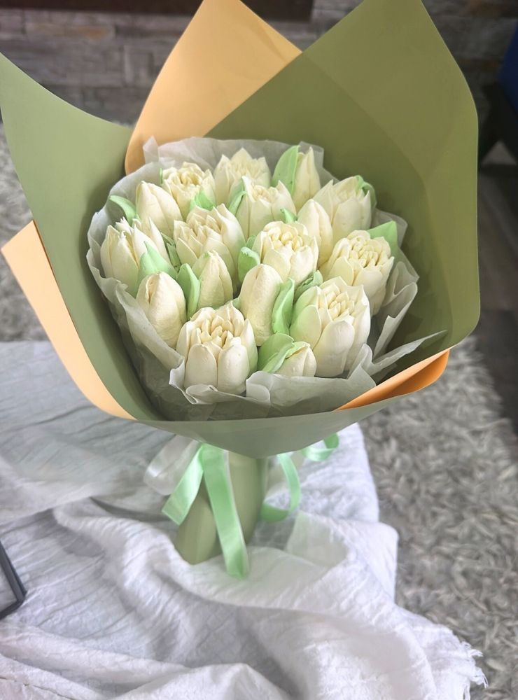 25 cm boyutunda, el yapımı yenilebilir lalelerden oluşan özel bir bukettir.
