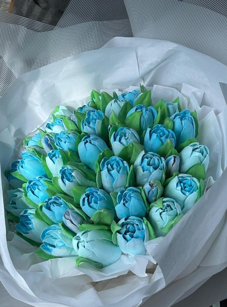 20 cm boyutunda, el yapımı yenilebilir lalelerden oluşan özel bir bukettir.